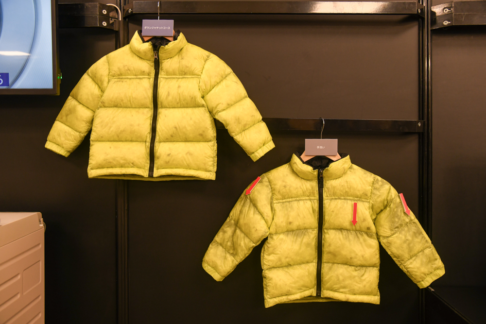 「通常ダウンジャケットの中わたというのは汚れておらず、むしろ洗う際に濡れた状態で力がかかることで絡まり、片寄りが起こることが分かった」と、今回のゴールドウインとの協業で得られた知見を語った五明氏。
