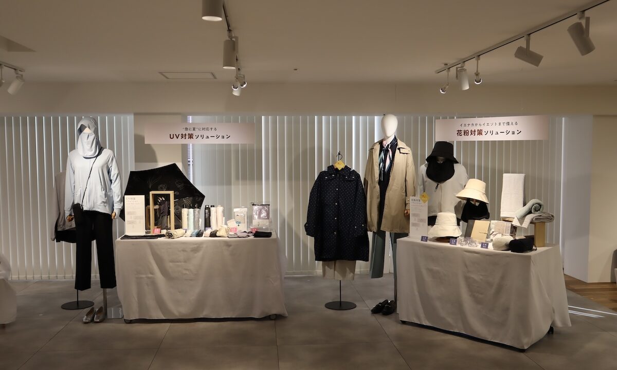 二季化により、春を飛び越えて夏のような日差しが降り注いだり、花粉の飛散が長期化したりと、体への負担が増しています。吉賀氏の語った「シーンを越えた対応力」を象徴するのが、アパレルや雑貨のラインナップです。