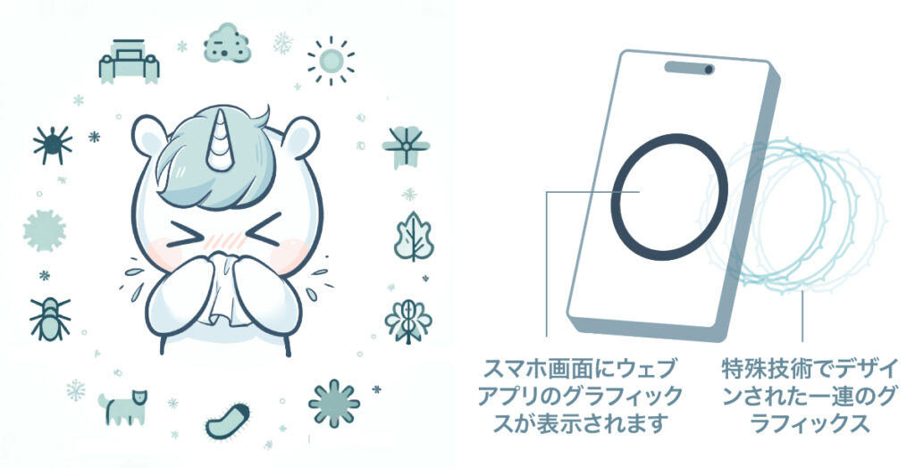 その背景にあるのは、東洋医学の身体観です。東洋医学では、体内には「気」と呼ばれるエネルギーが流れ、「経絡」と呼ばれる通り道を巡ることで体のバランスが保たれていると考えられています。花粉やハウスダスト、湿気、ストレスなどの影響によってこの流れが滞ると、むずむず感などの不快な症状として現れるとされています。My Reliefは、この「経絡の滞り」に着目し、スマートフォン上で複数のグラフィックを体験することで、不快感の軽減を目指す仕組みのプログラムです。