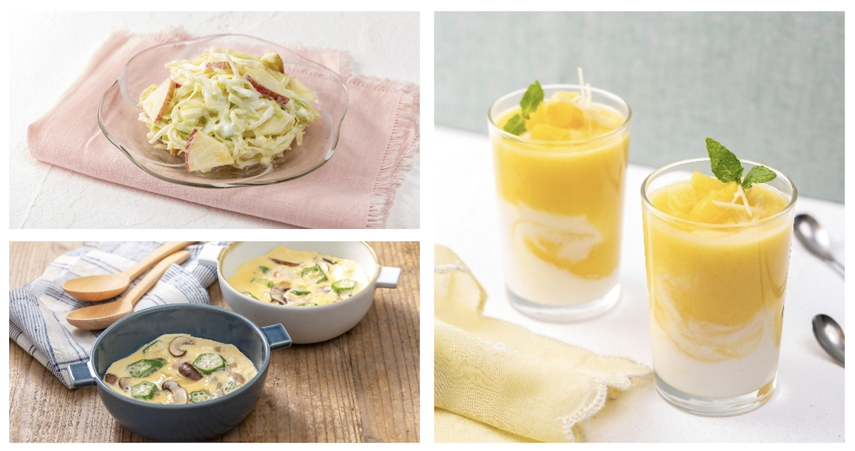 ・マヨネーズの代わりとなるヨーグルトは、胃酸の刺激をやわらげながら、消化しやすい形で栄養を補給でき、胃への負担を軽減します。「粘膜を修復する」「粘膜を守る」「胃の状態を整える」という働きによって、胸やけの予防・軽減につながります。